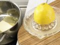 - 1Die Butter in einem kleinen Topf schmelzen und beiseitestellen. Zitrone auspressen.