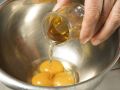 - 3Eier trennen, Eigelbe mit Senf und Gemüsefond in einen Schlagkessel (Topf mit rundem Boden) geben (Eiweiße anderweitig verwenden). Den Schlagkessel so auf das heiße Wasserbad setzen, dass er das Wasser nicht berührt.